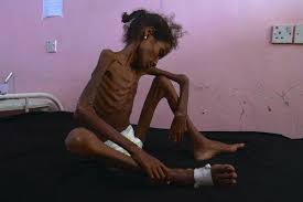 The Yemeni war... conducted by U.S. arms and Saudi butchers and assassins... assisted by their allies... This young girl is starving to death... because Saudis have blockaded the ports of Yemen and humanitarian aid cannot be delivered...